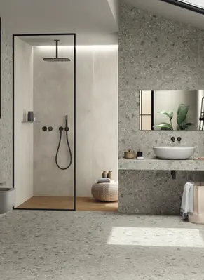 Vårt utvalg av baderomsfliser inkluderer keramiske, porselens-, marmor-, granitt-, skifer- og glassfliser, samt mange andre alternativer. Vi hjelper deg med å velge de riktige flisene som passer din smak og baderomsdesign. Vårt faglige team gir råd om fargevalg, mønster og teksturer som vil forbedre baderommet ditt.